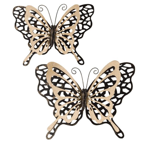 2 sets of wings, one raised from the other, give this piece a highly dimensional look. The matte black and gold leaf finish is a striking contrast and makes this piece really stand out. Black / Gold finishes are trending in home décor. Sold in Set/2 different sizes.